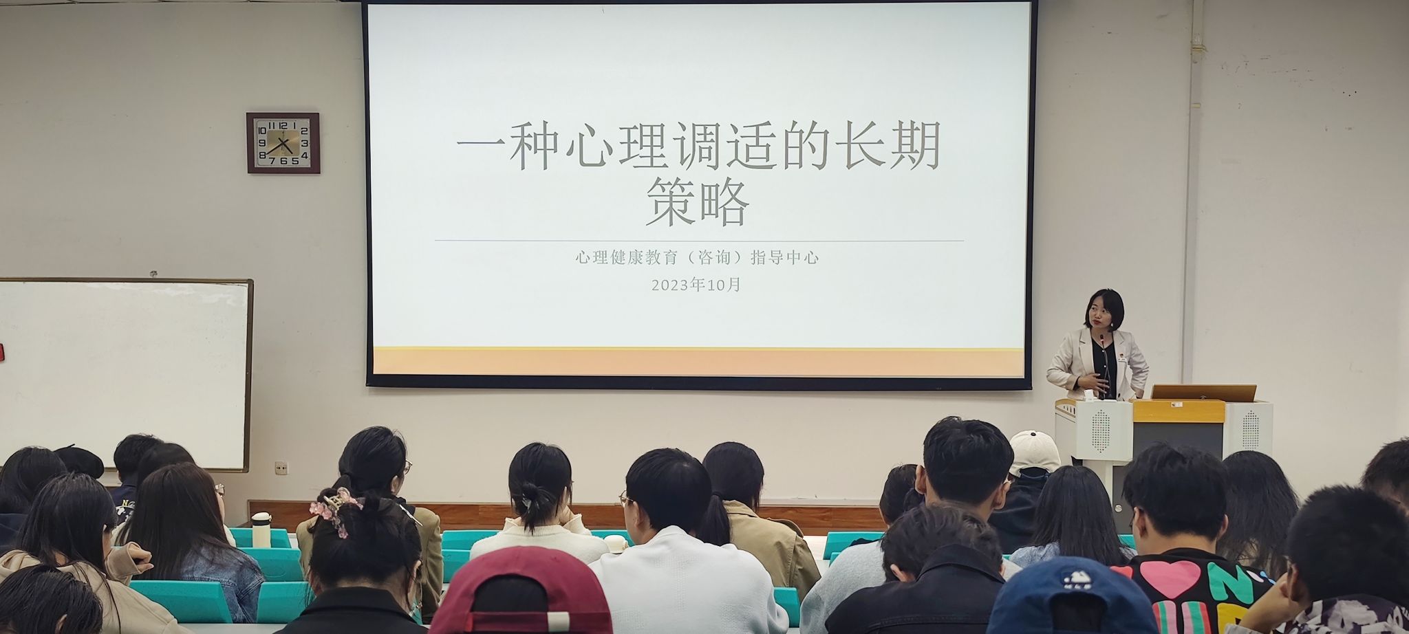 周全丽以“一种心理调适的长期策略”为主题为同学们带来了一场充满实用性、科学性和趣味性的讲座。首先,她简明扼要地介绍了心理学相关概念、专业特点、研究范围、行为与心理关联等内容,帮助同学们更好地认识自己、理解他人。接着,她用“秀才赶考解梦”的例子说明不同角度看待问题就有不同的想法的道理,鼓励同学们从多个角度看待问题。最后,周全丽分享了心理调适的长期策略,并提供了一些调节心理压力的“小工具”,如呼吸法、微笑法等。讲座中,同学们沉浸其中,积极主动地与主讲老师展开讨论与互动。
