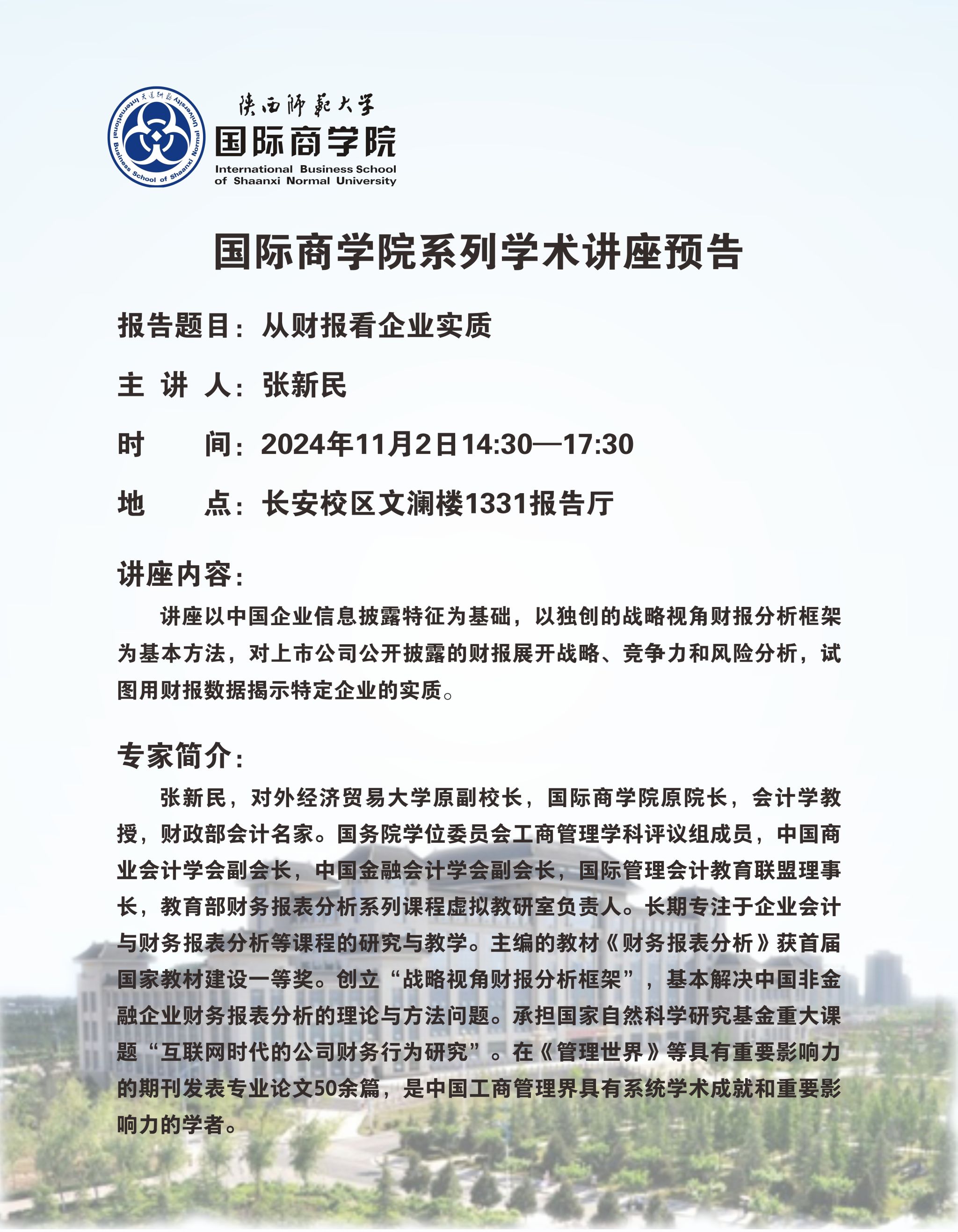 学术讲座预告——从财报看企业实质