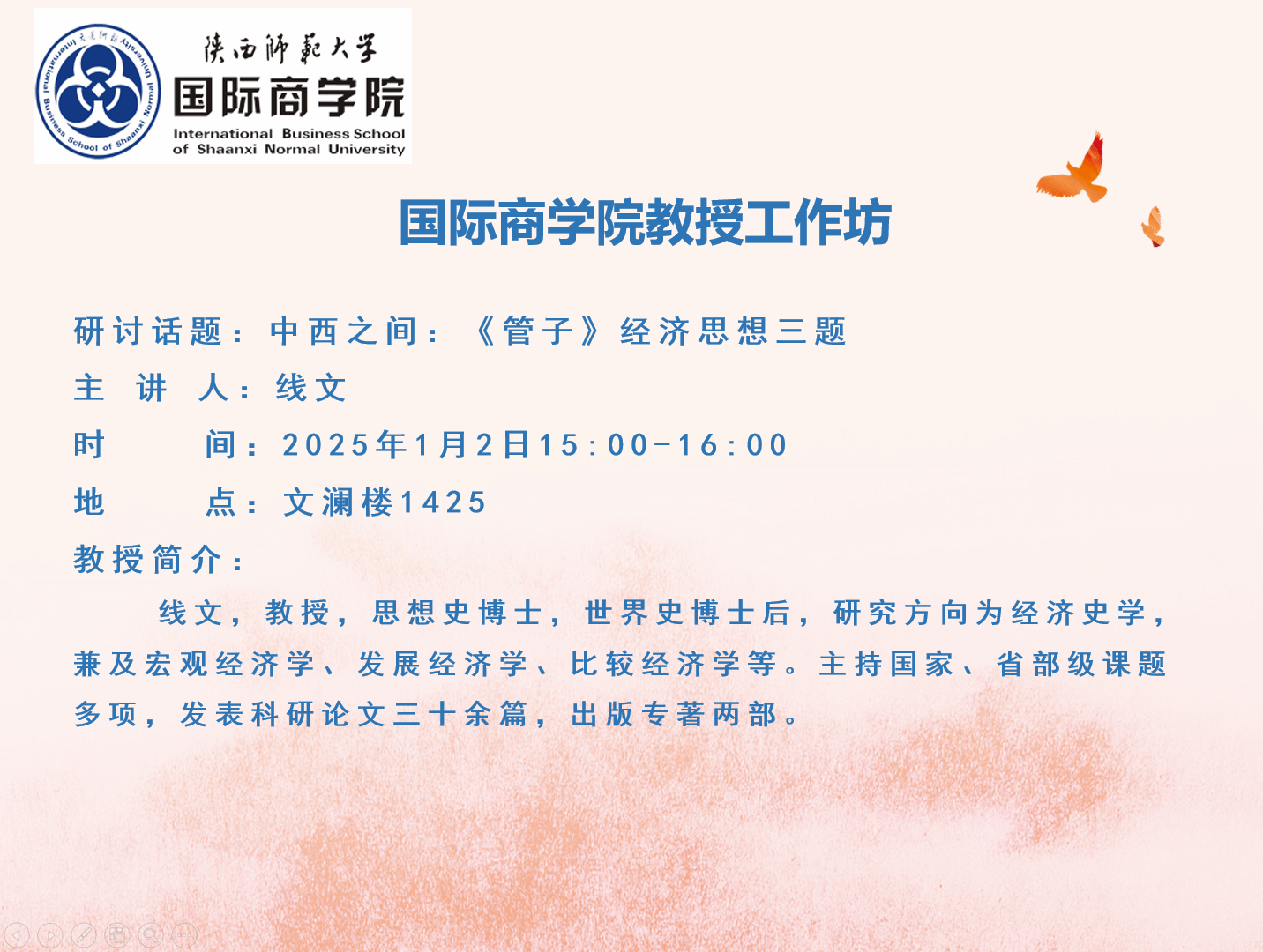 英国威廉希尔英文官网教授工作坊——中西之间:《管子》经济思想三题