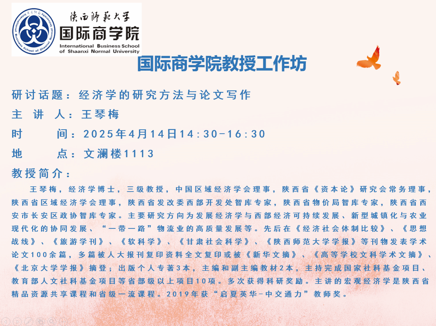 英国威廉希尔英文官网教授工作坊——经济学的研究方法与论文写作