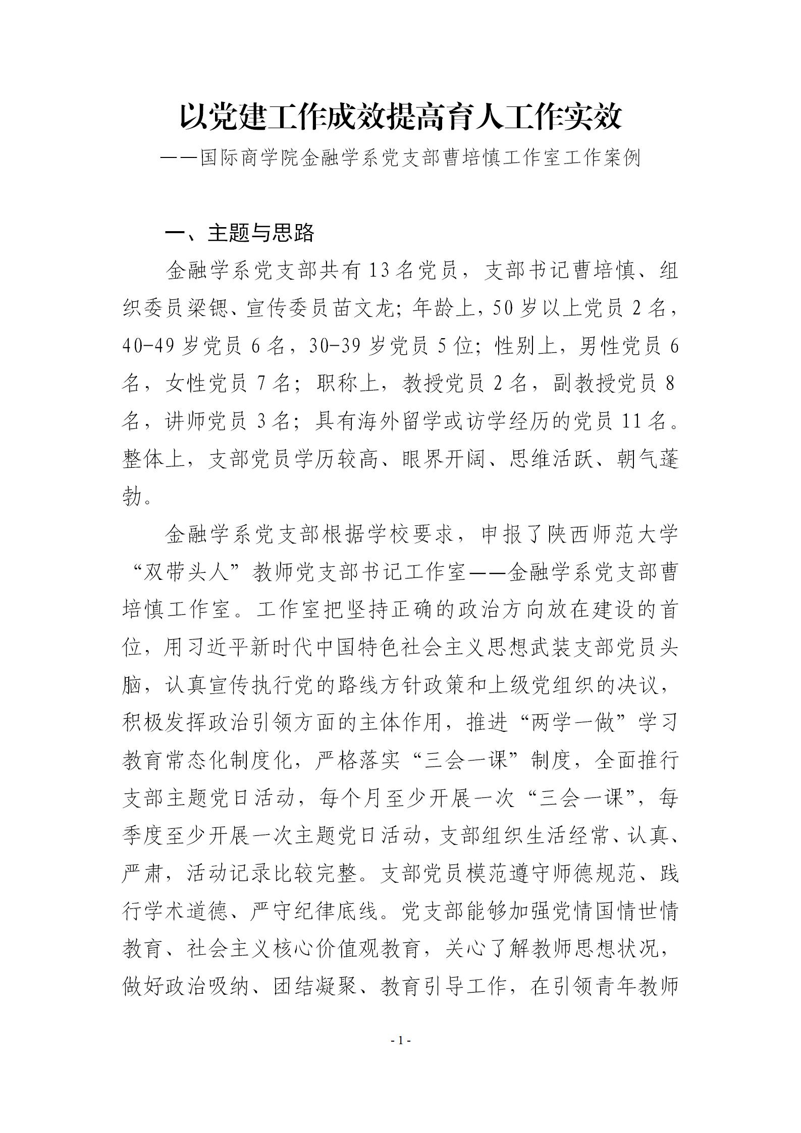 以党建工作成效提高育人工作实效——英国威廉希尔英文官网金融学系党支部曹培慎工作室工作案例