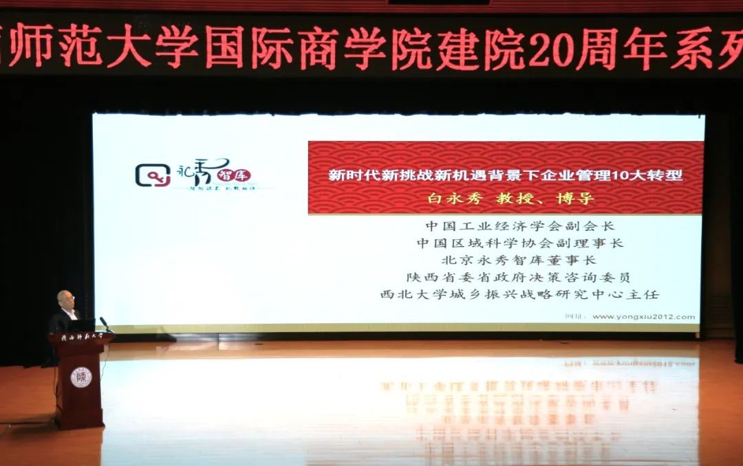 白永秀教授首先带来题为《新时代新挑战新机遇背景下企业管理的10大转型》的专题报告。白永秀指出,在新的时代背景下,国内外发展环境复杂多变,变局中挑战和机遇同生并存,企业管理需要深刻认识我国社会主要矛盾变化带来的新特征,国际环境带来的新挑战以及全面深化改革的新任务,把握发展机遇,进行管理理念、管理底线和管理制度等十大转型,推动经济高质量发展。