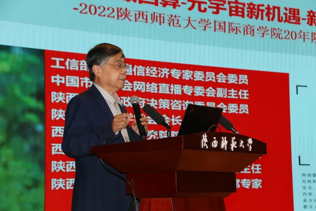 张鸿教授围绕“数字化新时代”“新基建东数西算”“元宇宙新机遇”“新技术新商科”四个关键词,带来题为《数字经济的发展历程及未来》的报告。张鸿指出,数字化为经济发展带来了新任务,数字时代要抢抓数字经济发展的新机遇,从数字基建、数字产业、数字乡村、数字治理和数据资产五个方面持续发力,加快数字经济与实体经济融合的发展。