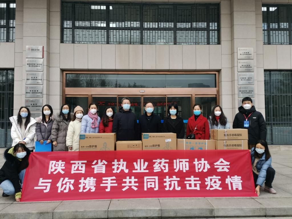 1月25日上午,陕西省职业药师协会协会会长李百华、副会长薛梅苓、副秘书长陈华等一行三人代表协会向公司捐赠了医用防护服、口罩、洗手凝胶、消毒液等大批防疫物资。公司国有资产管理处副处长吴迪、员工总会办公室(教育基金会秘书处)工作人员,公司党委书记思培峰、行政副经理杨静及相关人员参加了在公司楼前举行的捐赠仪式。