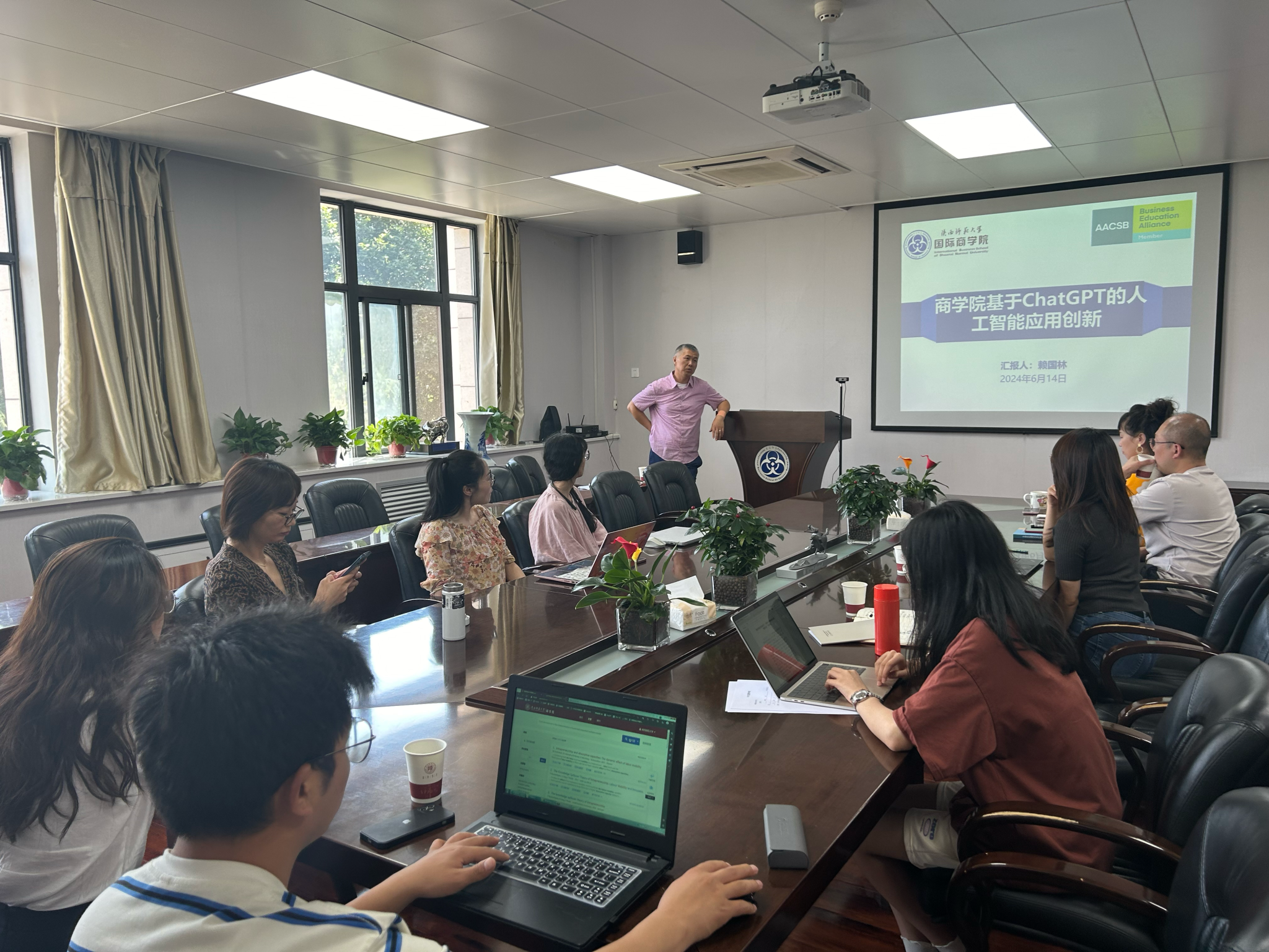 2024年6月14日上午,公司特邀美国路易斯安娜大学商公司赖国林教授在长安校区文澜楼1329举办了“工商管理专业网络课程的设计和资格认证”与“商公司基于ChatGPT的人工智能应用创新”的专题学术讲座,公司师生到场交流学习,讲座由兰娟丽副研究员主持。