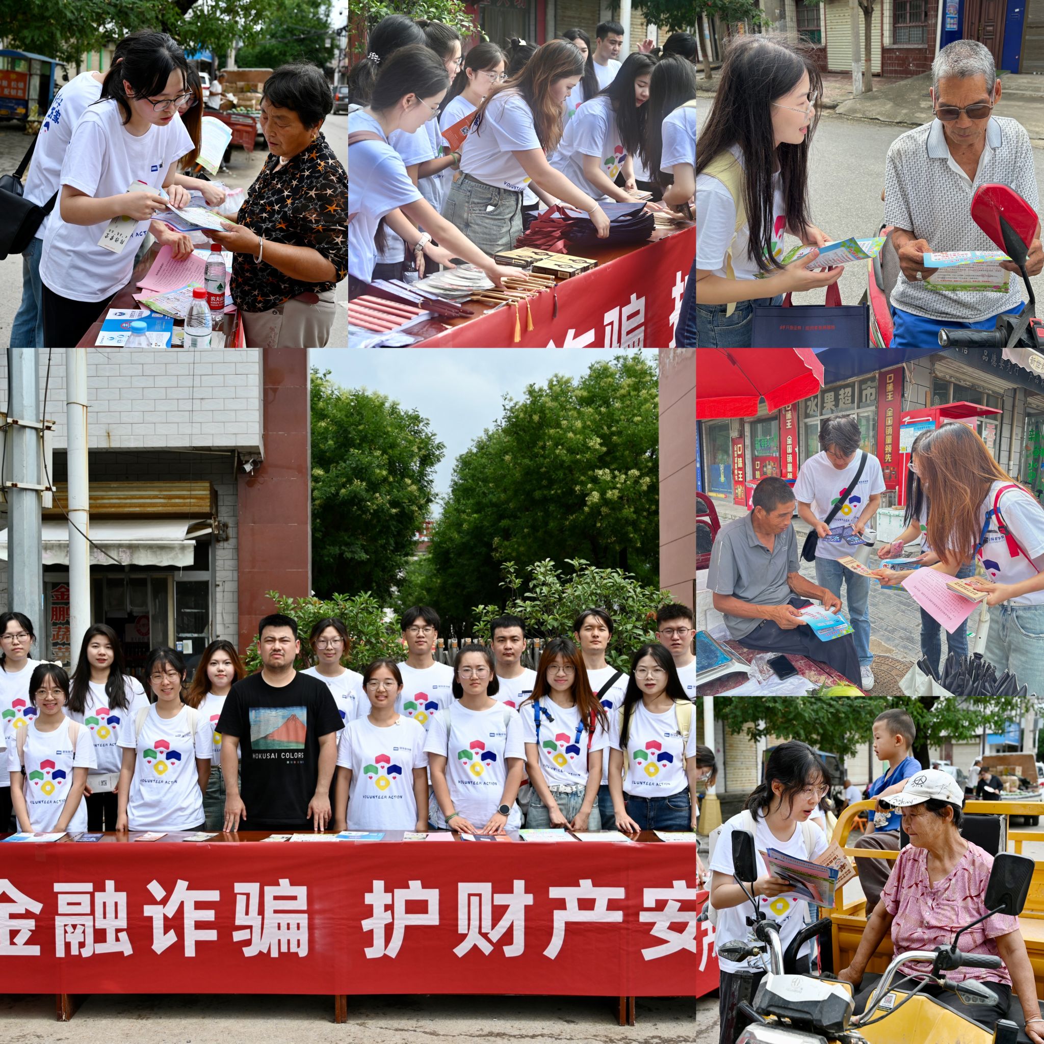 7月17日,实践团的成员们在孙镇人民政府门前井然有序地开展了“千名学子进万家”经管志愿者行动计划之反诈知识宣传活动。他们热情地向前来咨询的当地居民细致解读防诈骗宣传手册中的内容,积极传播防范诈骗知识。现场人头攒动,气氛热烈,宣讲点吸引了众多居民参与其中。成员们不仅在现场答疑,还深入店面、社区和住户家,挨家挨户地开展宣传,确保防诈知识普及无遗漏。实践团队以扎实的行动彰显了强烈的社会责任感,与孙镇人民政府紧密合作,共同绘制了一幅全民总动员、携手共建安全和谐社区的美好蓝图。