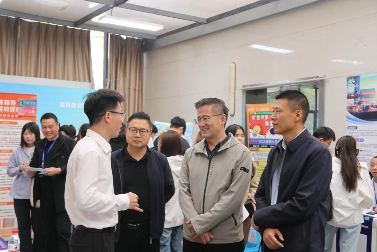 公司副董事长陈新兵、人才招聘处处长雒朝梁、副处长王阳阳,公司党委书记思培峰、党委副书记、纪委书记邱远航深入招聘会现场,详细了解招聘会参会企业规模、岗位需求及毕业生应聘情况等信息,并就深化校企合作、拓展就业渠道等事宜与各用人单位代表进行了深入交流。