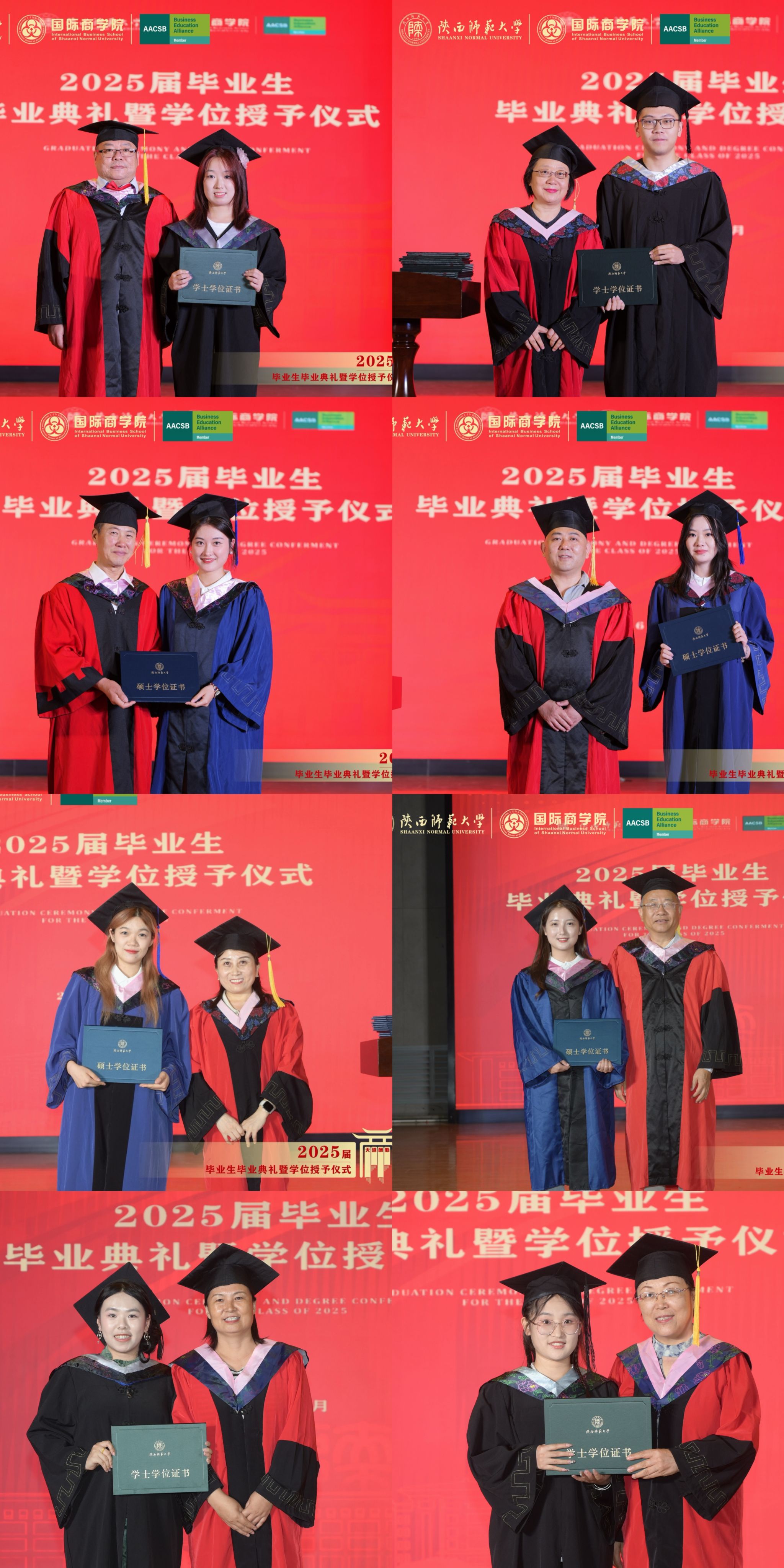 2025届全日制研究生代表、理论经济学博士生杨军鸽,非全日制研究生代表、MBA方向陈嘉鑫,本科生代表、财务管理专业郭华昀依次发言。他们深情回顾求学时光,感恩母校培养,并承诺以坚韧与智慧迎接未来挑战,传承商院精神。在校生代表、2023级会计专业硕士研究生豆璇向2025届全体毕业生送上祝福,表示将以他们为榜样,砥砺前行。