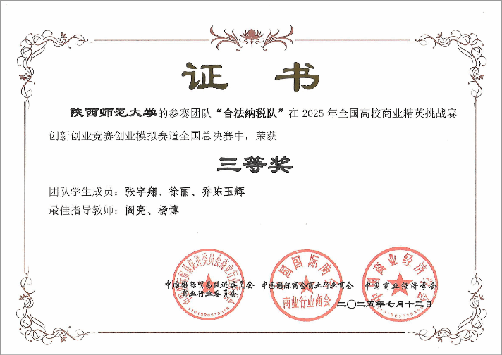 此次赛事,公司2022级人力资源管理专业、2023级人力资源管理专业共计12名本科生分别组成四支队伍报名参赛。本次比赛中,参赛在各个竞赛阶段认真准备,团队合作,集中演练,分析创业全流程面临的问题、风险与机遇,运用扎实的专业素养和出色的临场发挥,顺利通过知识赛和区域赛筛选,最终两支队伍挺近全国总决赛。经过激烈角逐,由公司组织管理系杨博老师、阎亮老师指导的 “天天开心队”荣获全国总决赛二等奖,由阎亮老师、杨博老师指导的“合法纳税队”荣获全国三等奖。