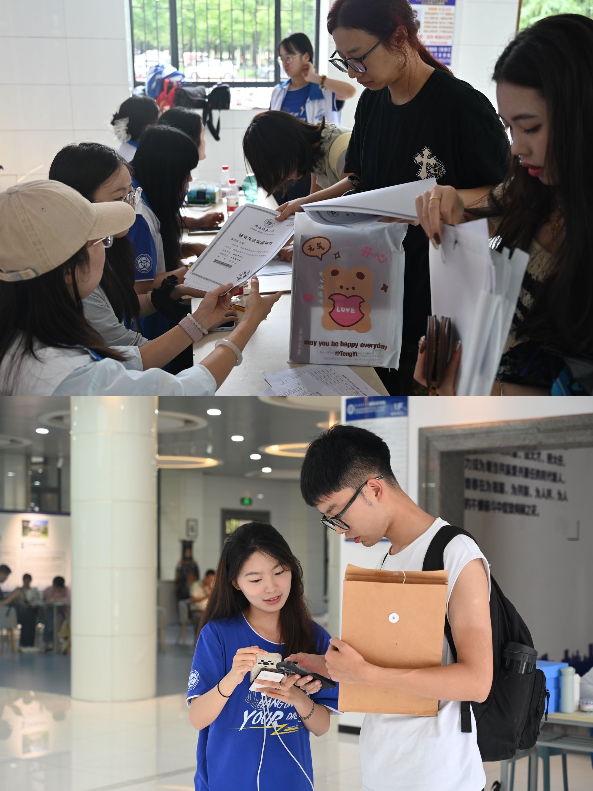 宿舍园区内,从指路到协助搬运,从入住须知到生活提醒,工作人员细心相伴,帮助新生迅速融入新环境。核验信息组认真核对每一份材料,面对新生提出的问题,她们认真倾听、耐心解答,缓解了他们初入新校园时的紧张与焦虑。