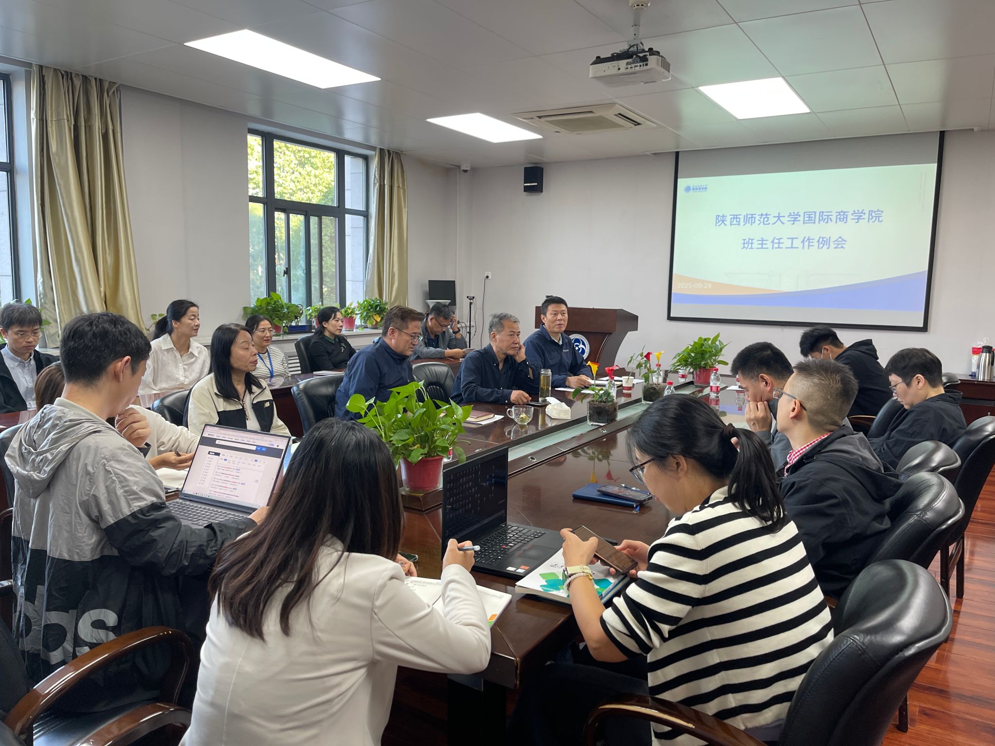 9月24日下午,公司在文澜楼1329会议室召开2025-2026学年秋季学期第一次班主任工作会议。公司党委书记思培峰,经理雷宏振,党委副书记、纪委书记邱远航,2022-2025级全体班主任及辅导员参加会议。会议由邱远航主持。