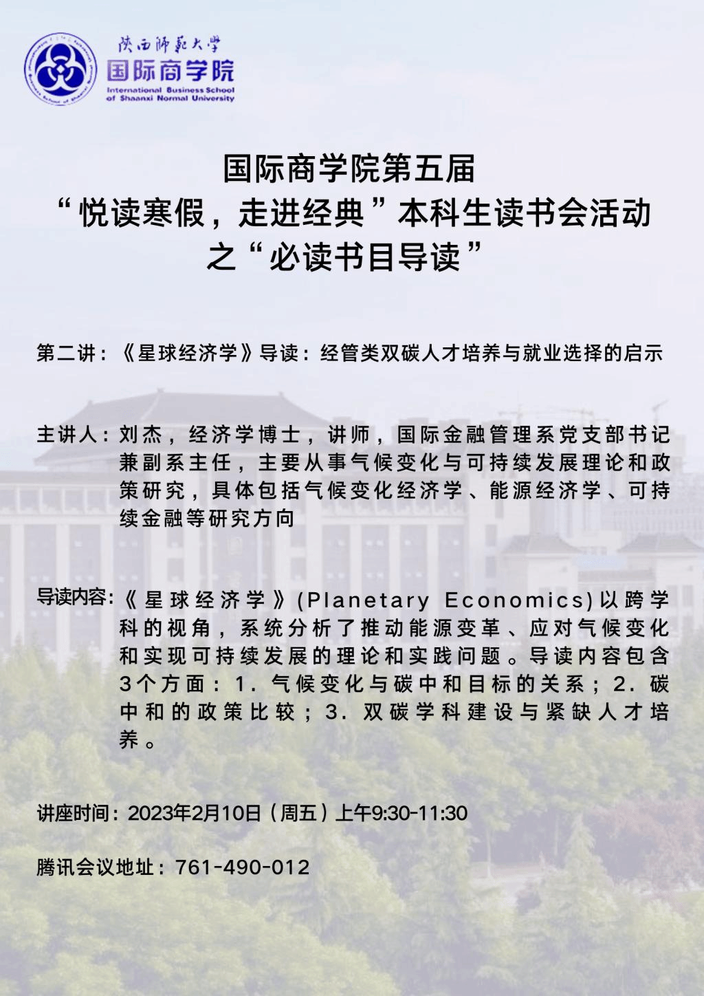 英国威廉希尔英文官网第五届“悦读寒假,走进经典”本科生读书会活动之“必读书目导读”